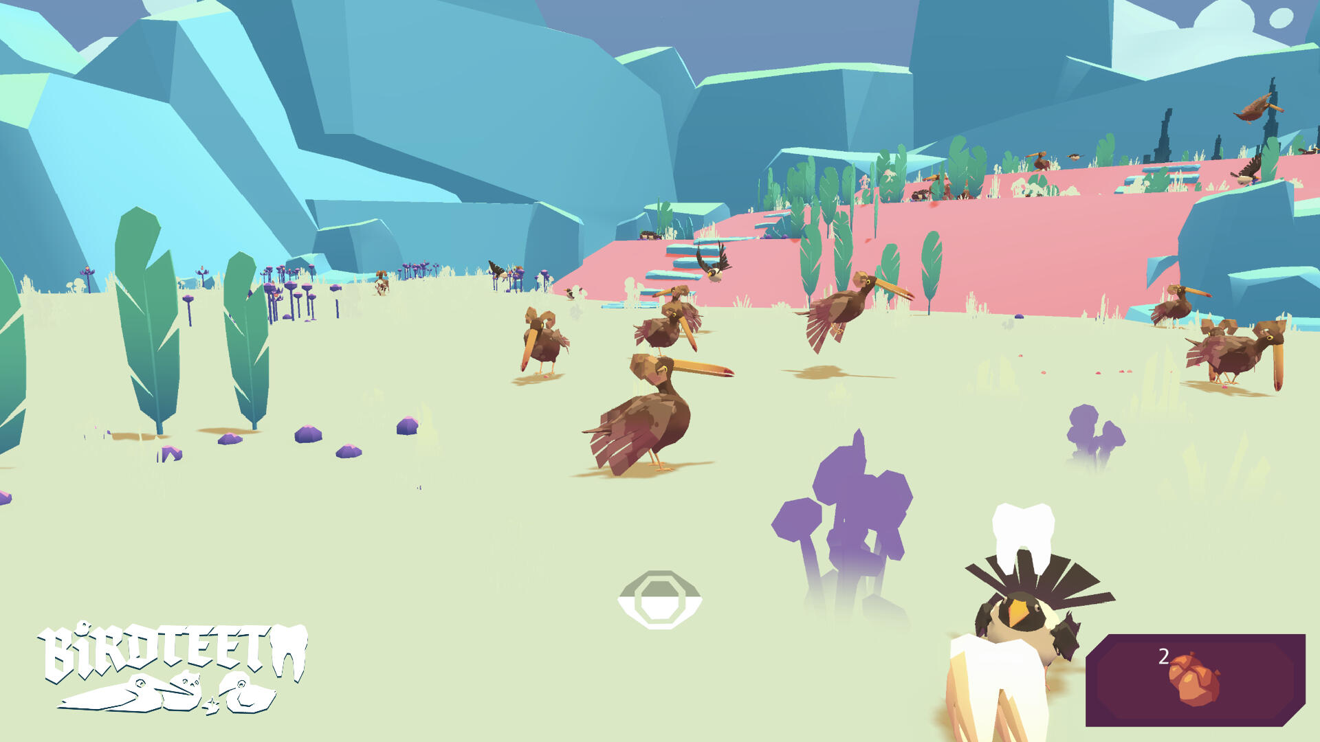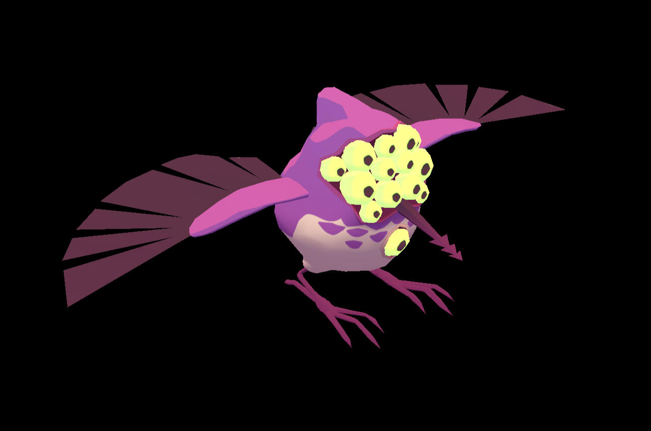 I originally began with a bunch of ideas, trying to figure out how I wanted the general feel of the birds to be. Once we decided on the initial biome that we wanted the player to start in, I focused more designs on the bird species that would be found specific to the biome. Though I worked on the concept art as well, many designs were also handed off to Amy Chen, the lead concept artist of Stone Quail Games, who designed the Shrikebeaked Pike and the Lesser Otrew.The goal was for the birds to be cute, but weird, maybe even slightly off-putting. This weirdness shone more in some birds than others, with small specks of blood, dead eyes, or many eyes. Overall, we needed them to be strange and full of personality.