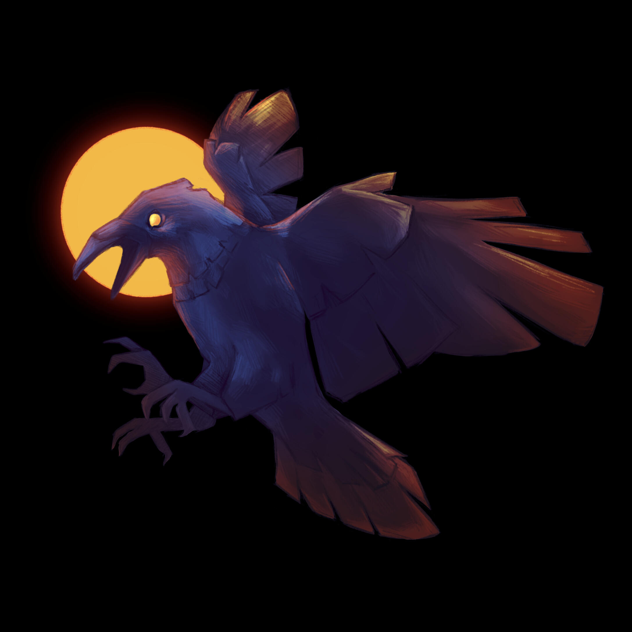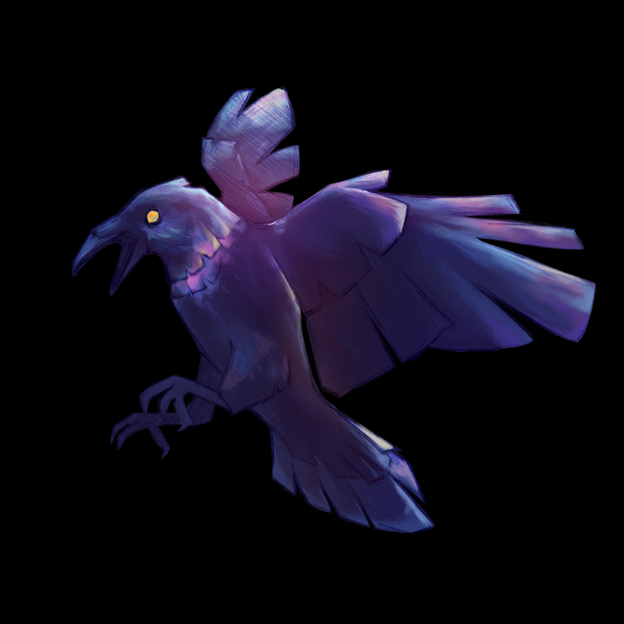 For the final product, I made 2 crows and rigged them to easily add more variation. All the assets were made in Maya, focusing on topology and UV unwrapping, then sculpted over in ZBrush to create the hand painted, heavily textured look of the final work. This effect was further emphasized in Substance Painter. Final touch ups and paint overs were added in Procreate.